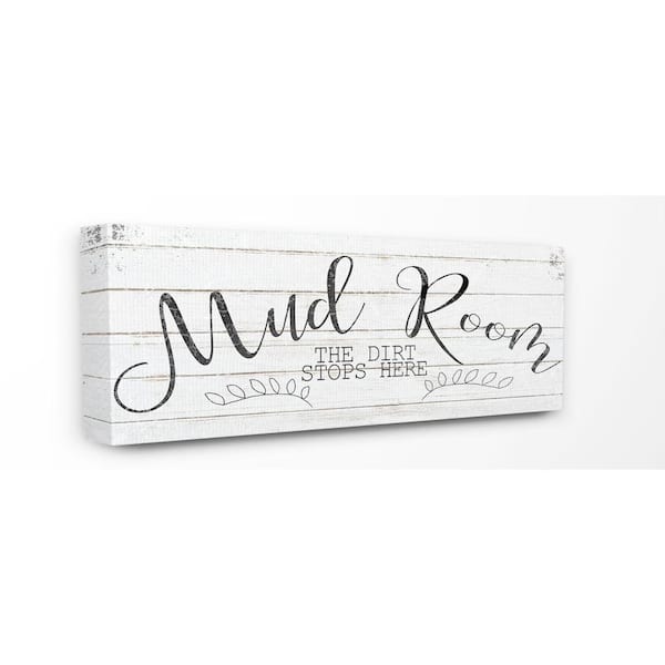 10 in. x 24 in. "Mud Room The Dirt Stops Here Black and White Planked Look" by Kimberly Allen Canvas Wall Art