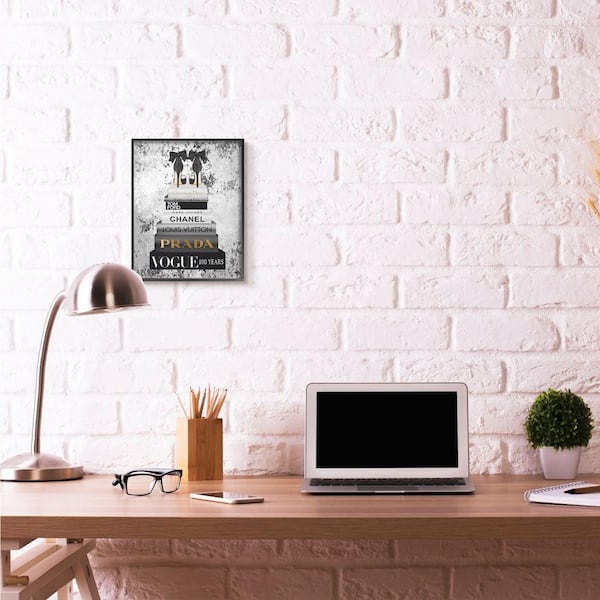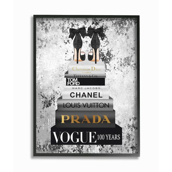 11 in. x 14 in. "Fashion Designer Shoes Bookstack Black And White WaterColor" by Amanda Greenwood Framed Wall Art