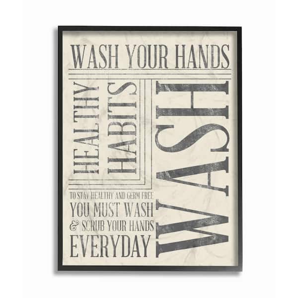 11 in. x 14 in. "Wash Your Hands Typography Bathroom Art" by Sd Graphics Studio Wood Framed Wall Art