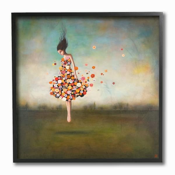 12 in. x 12 in. "Surreal Dress Made of Flowers in an Abstract Landscape Painting" by Duy Huynh Framed Wall Art