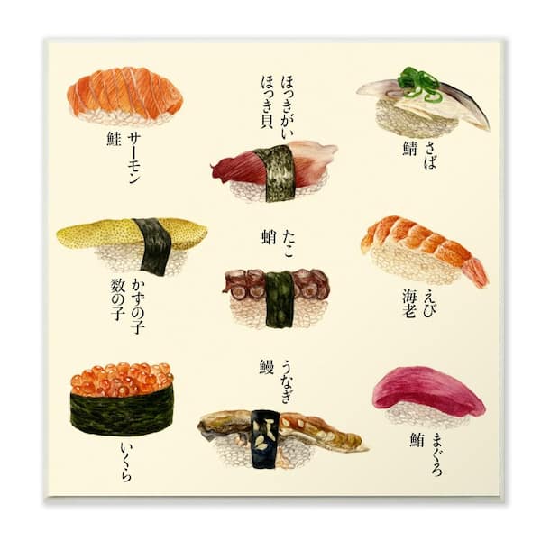 12 in. x 12 in." Sushi Illustration Chart" by Melissa Wang Printed Wood Wall Art