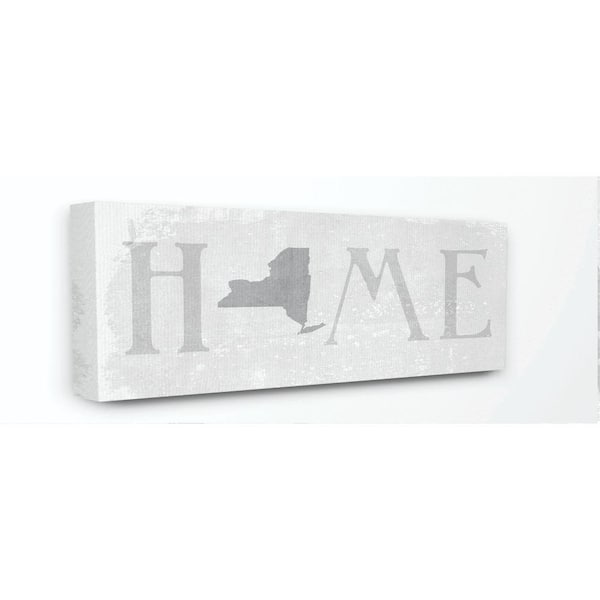 13 in. x 30 in. "New York Home State Map Grey Neutral Textured Word" by Daphne Polselli Canvas Wall Art