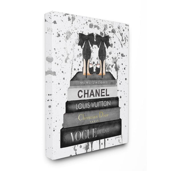 16 in. x 20 in. "Glam Fashion Book Stack Grey Bow Pump Heels Ink" by Amanda Greenwood Printed Canvas Wall Art