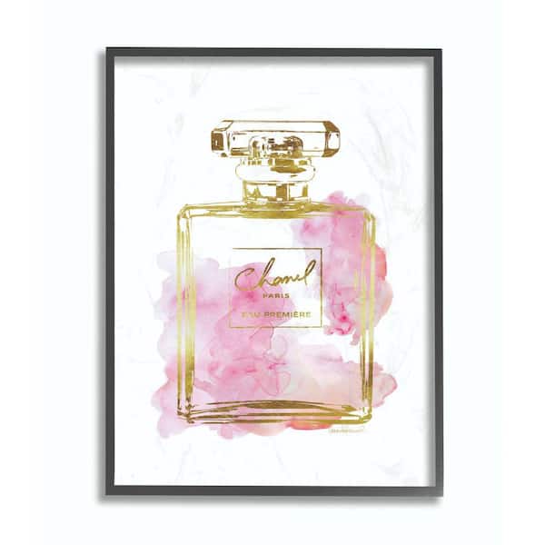 16 in. x 20 in. "Glam Perfume Bottle Gold Pink" by Amanda Greenwood Wood Framed Wall Art