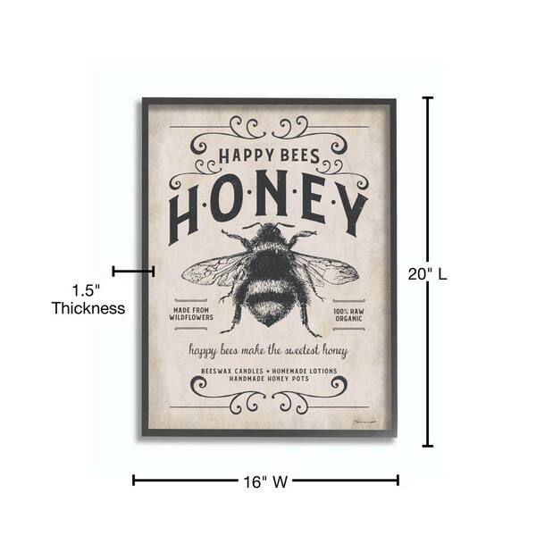 16 in. x 20 in. "Honey Bee Rustic Farm Textured Word" by Stephanie Workman Marrott Framed Wall Art