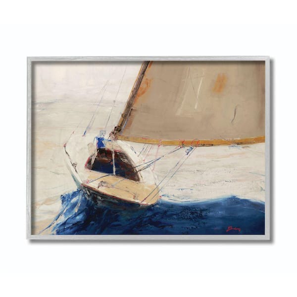 16 in. x 20 in. "Ocean Sailboat Soaring Impressionist Beach Painting" by Third and Wall Framed Wall Art