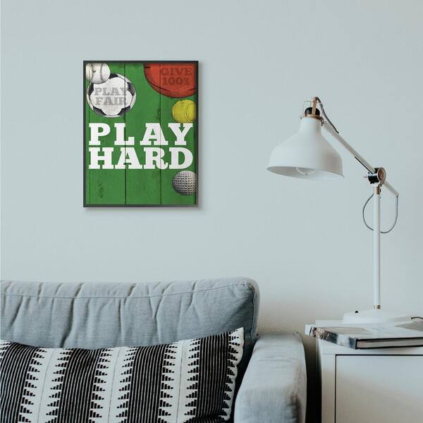 16 in. x 20 in. "Play Hard Sports Equipment Green Word Design" by The Saturday Evening Post Framed Wall Art