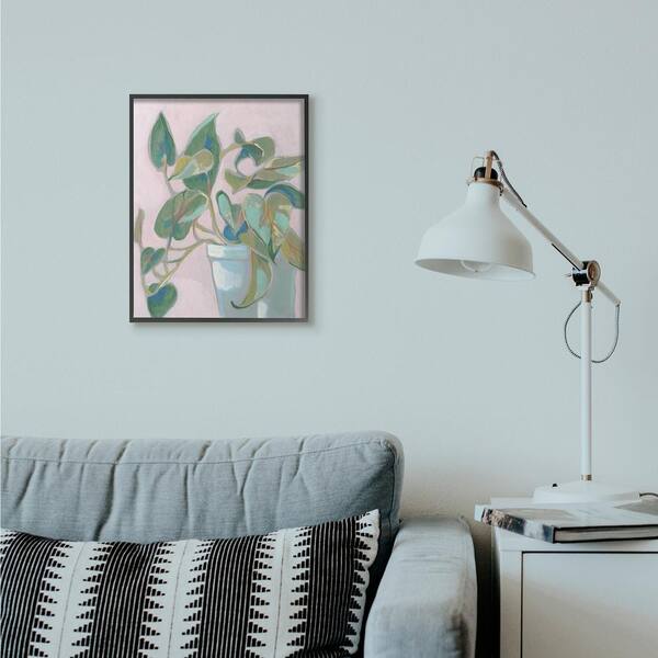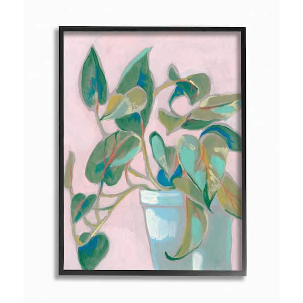 16 in. x 20 in. "Potted Plant Green Pink Painting" by Jennifer Goldberger Framed Wall Art