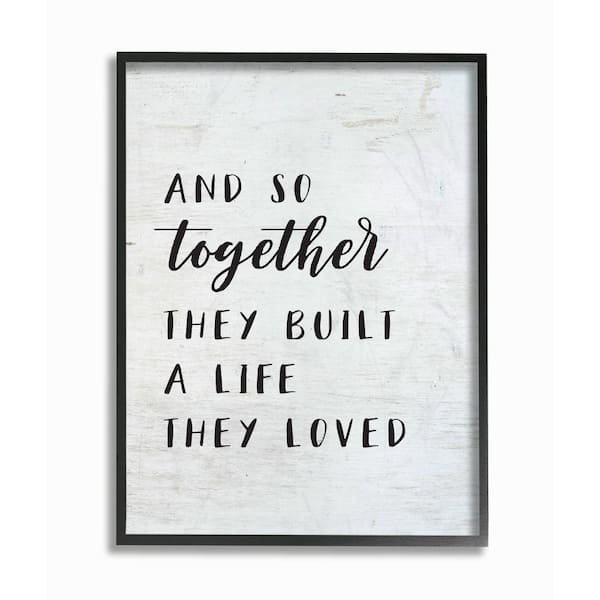 16 in. x 20 in. "Together Home Family Inspirational Word On Wood Texture" by Lettered and Lined Framed Wall Art