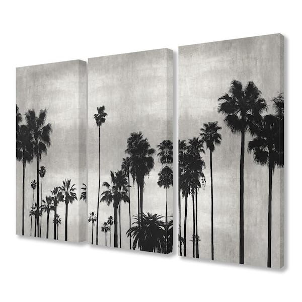 16 in. x 24 in. "Black and White Palm Tree Silhouette Scene" by Artist Kate Bennett Canvas Wall Art(3Pieces)