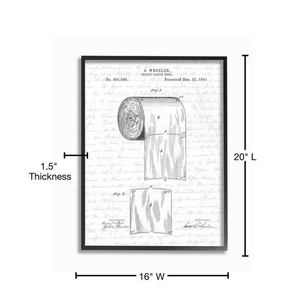 16 in. x20 in. "Toilet Paper Roll Patent Black And White Bathroom Design"by Lettered and LinedFramed Wall Art