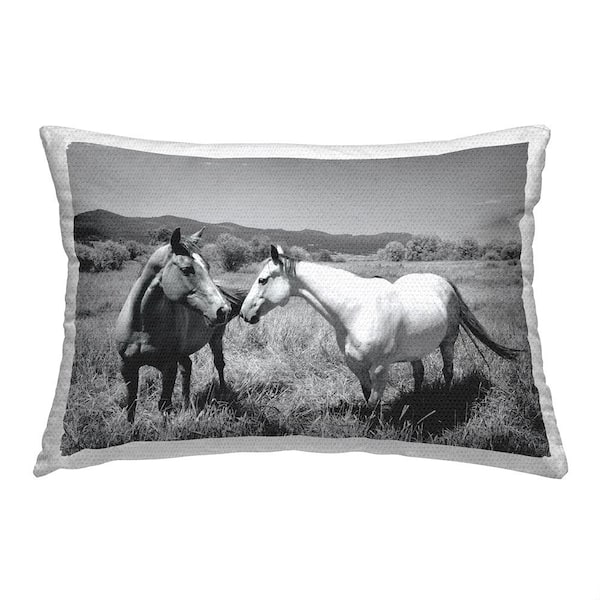 2-Horses in Pasture Grey Rectangular Outdoor Throw Pillow
