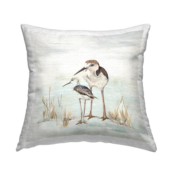 2-Sandpiper Beach Birds Grey Square Outdoor Throw Pillow