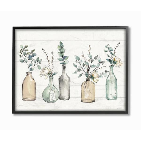 24 in. x 30 in. "Bottles And Plants Farm Wood Textured Design" by Anne Tavoletti Framed Wall Art
