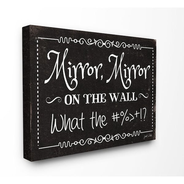 24 in. x 30 in."Mirror Mirror Funny Black and White Typography" by Artist Janet White Canvas Wall Art