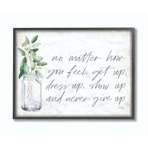 24 in. x 30 in. "No Matter How You Feel Never Give Up Inspirational Plants in Mason Jar" by Marla Rae Framed Wall Art