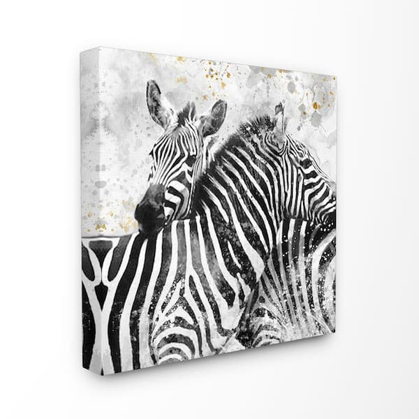 30 in. x 30 in. "Black and White Paint Splatter Textural Zebra"by Artist Main Line Art & Design Canvas Wall Art
