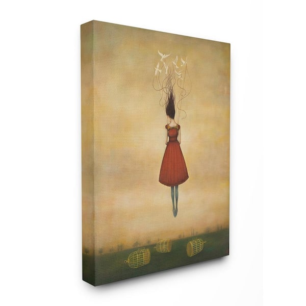 30 in. x 40 in. "Beauty and Birds in Her Hair Woman in Red Dress Flying Away" by Duy Huynh Canvas Wall Art