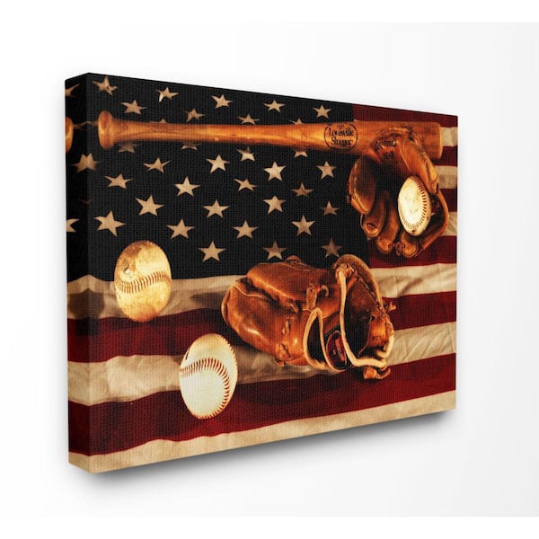 30 in. x 40 in. "Vintage American Flag Baseball Sports Rustic Photo" by Daniel Sproul Canvas Wall Art