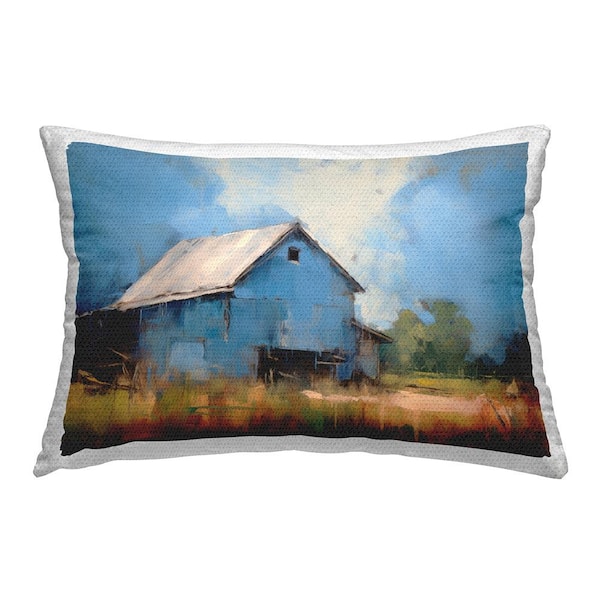 Abstract Farm House Blue Rectangular Outdoor Throw Pillow