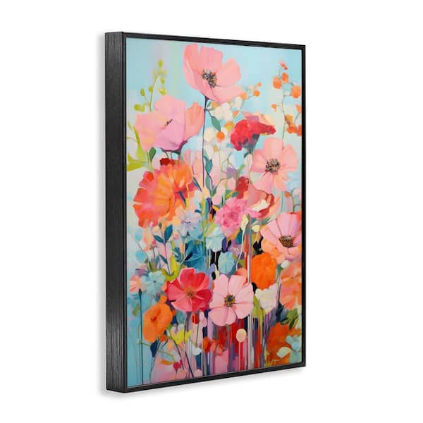 Abstract Flowers on Blue by LSR Design Studio Black Framed Nature Giclee Art Print 18 in. x 12 in.