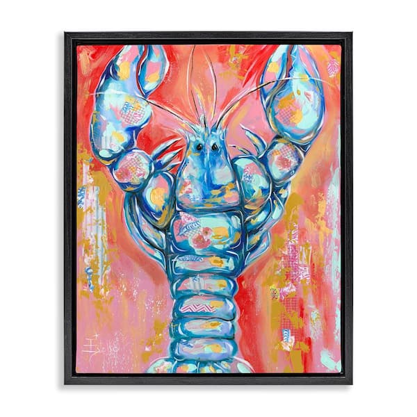 Abstract Patchwork Lobster by Estelle Grengs Black Floater Frame Coastal Graphic Art Print 31 in. x 25 in.
