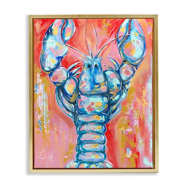 Abstract Patchwork Lobster by Estelle Grengs Gold Floater Frame Coastal Graphic Art Print 21 in. x 17 in.