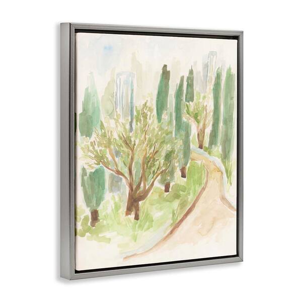 Abstract Road with Trees by June Erica Vess Gray Floater Frame Nature Graphic Art Print 21 in. x 17 in.