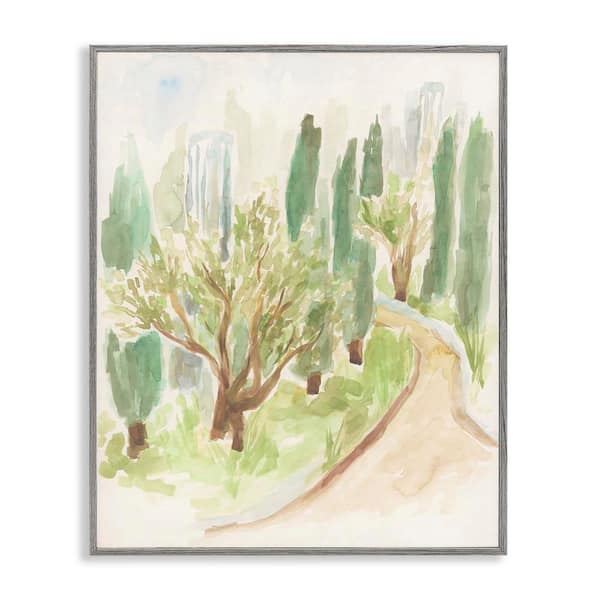 Abstract Road with Trees by June Erica Vess Gray Framed Nature Giclee Art Print 20 in. x 16 in.