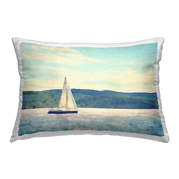 Abstract Sailing Boat Blue Rectangular Outdoor Throw Pillow