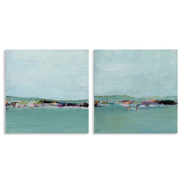 Abstract Sea Distant Cliffs by Ethan Harper 2-Pieces Unframed Abstract Graphic Art Print 17 in. x 17 in.