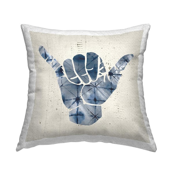 Abstract Shaka Sign Hand Gesture Blue Geometric Pattern Printed Pillow Blue Square Outdoor Throw Pillow