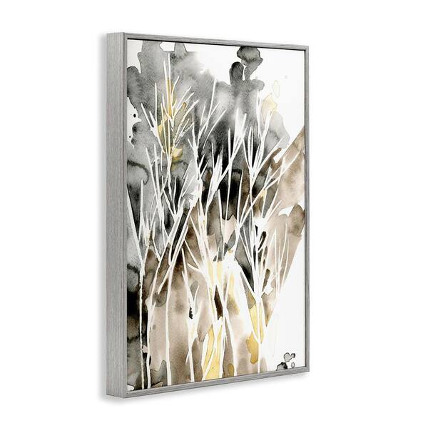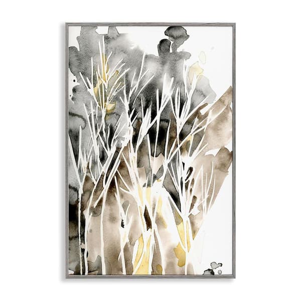Abstract Sprigs Watercolor by Regina Moore Gray Framed Nature Giclee Art Print 18 in. x 12 in.