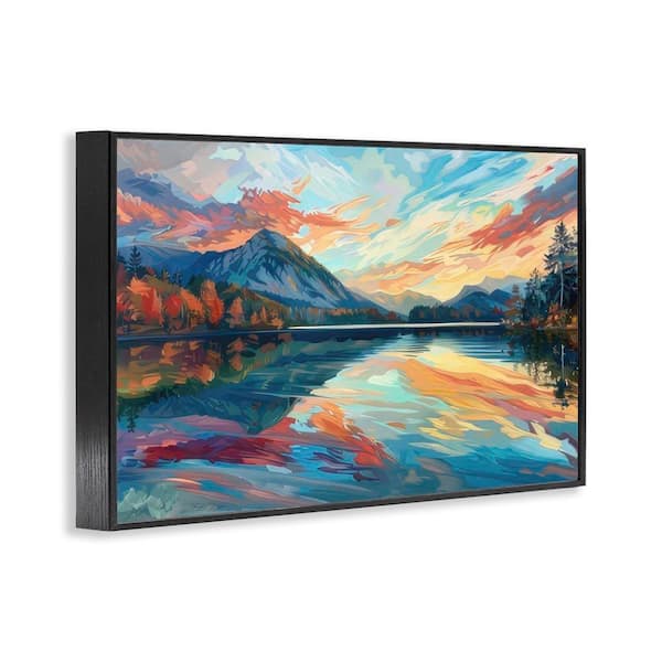 Abstract Swirled Lake and Mountain by LSR Design Studio Black Framed Nature Giclee Art Print 16 in. x 24 in.