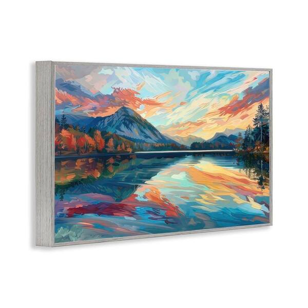 Abstract Swirled Lake and Mountain by LSR Design Studio Gray Framed Nature Giclee Art Print 12 in. x 18 in.