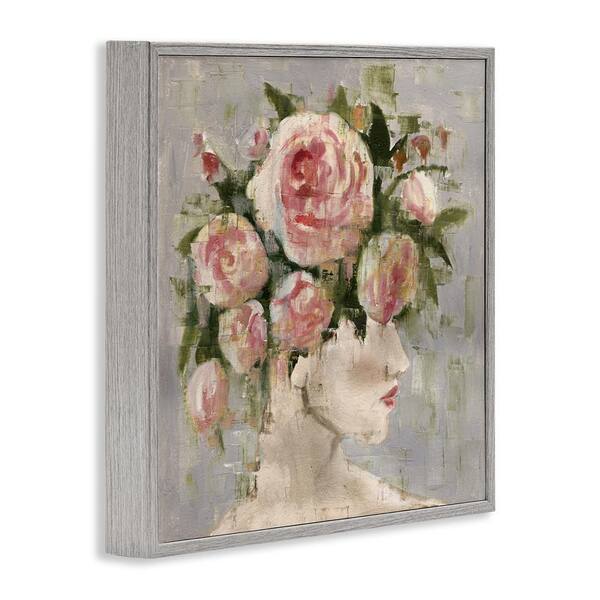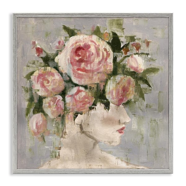 Abstract Woman with Roses by Charity Henderson Gray Framed Nature Giclee Art Print 12 in. x 12 in.
