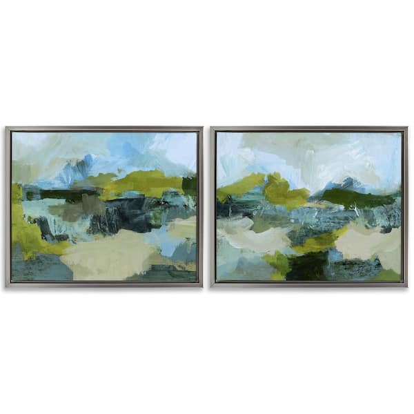 Abstraction with Green Details by Victoria Barnes 2 Piece Gray Floater Frame Abstract Graphic Art Print 17 in. x 21 in.