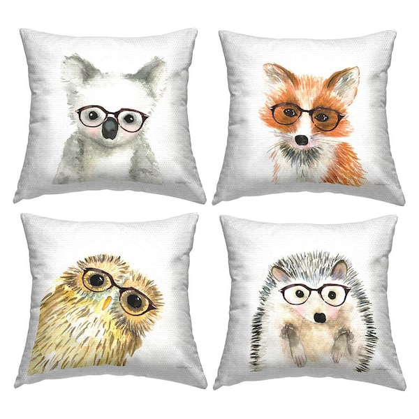 Adorable Forest Animals Hipster Glasses Owl Fox Multi-Color Square Outdoor Throw Pillow 4-Pack
