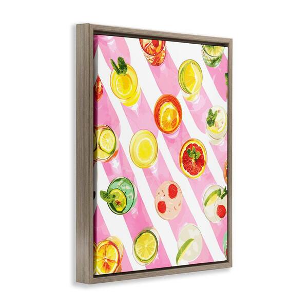 Aerial Cocktails on Stripes by Daphne Polselli Brown Floater Frame Food Graphic Art Print 21 in. x 17 in.
