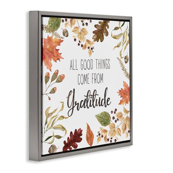 All Good Things Graditude by Livi Finn Gray Floater Frame Graphic Nature Art Print 25 in. x 25 in.