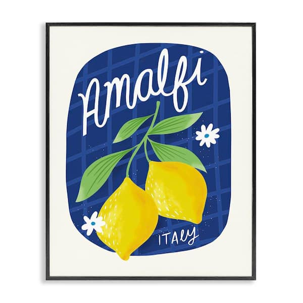 Amalfi Lemons on Blue by Louise Allen Designs Black Framed Food Giclee Art Print 20 in. x 16 in.