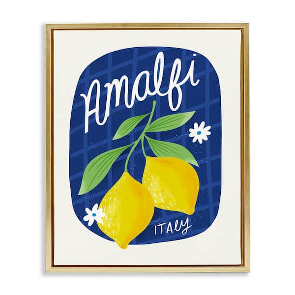 Amalfi Lemons on Blue by Louise Allen Designs Gold Floater Frame Food Graphic Art Print 21 in. x 17 in.