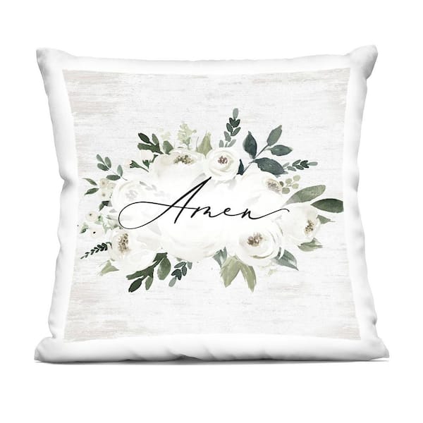 Amen and White Roses Off-White Print Polyester 18 in. x 18 in. Throw Pillow