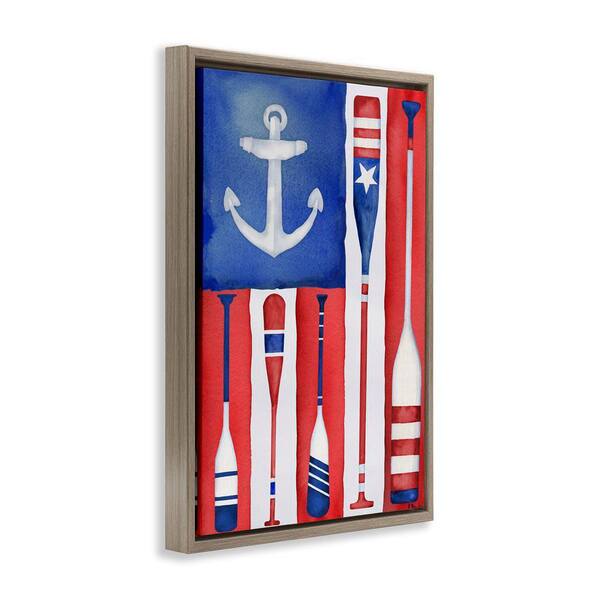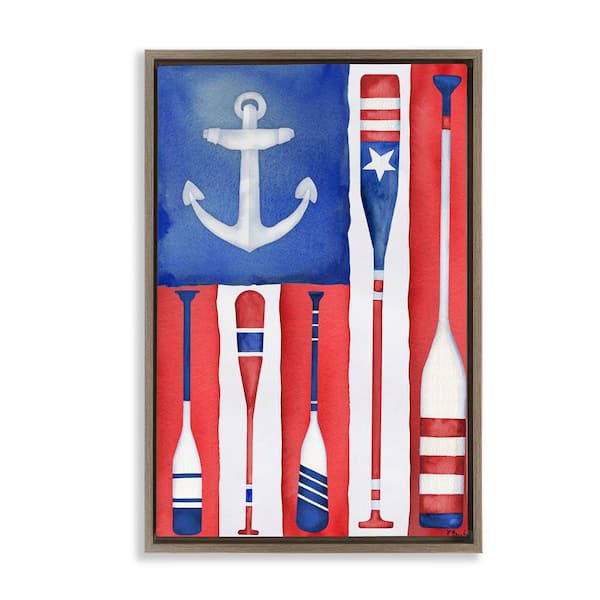 Americana Oar Flag by Paul Brent Brown Floater Frame Typography Graphic Art Print 31 in. x 21 in.