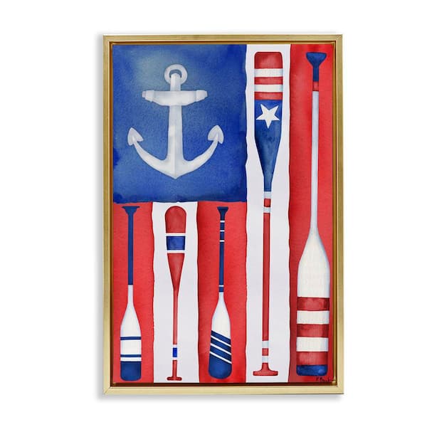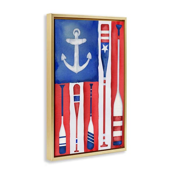 Americana Oar Flag by Paul Brent Gold Floater Frame Typography Graphic Art Print 25 in. x 17 in.