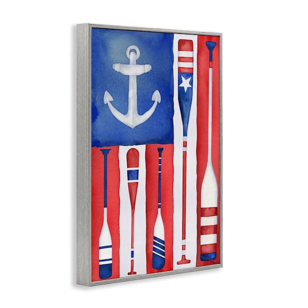 Americana Oar Flag by Paul Brent Gray Framed Typography Giclee Art Print 30 in. x 20 in.
