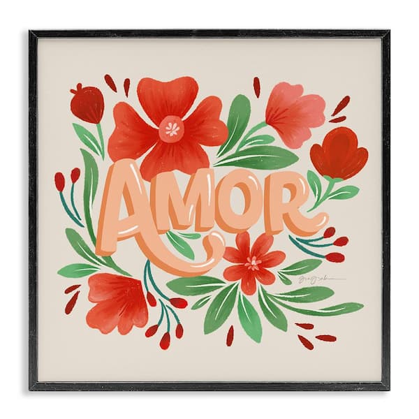 Amor with Red Flowers by Gia Graham Black Framed Nature Giclee Art Print 24 in. x 24 in.