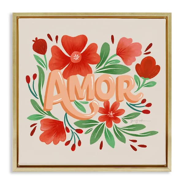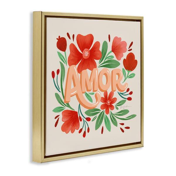 Amor with Red Flowers by Gia Graham Gold Floater Frame Nature Graphic Art Print 25 in. x 25 in.