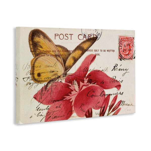 Antique Postcard and Butterfly by Deborah Revell Unframed Animal Graphic Art Print 20 in. x 30 in.