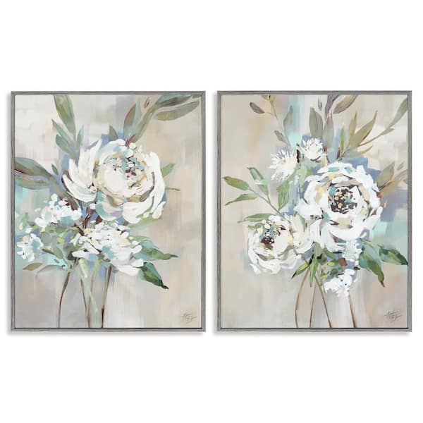 Antique Rose Bundles by Nina Blue 2-Pieces Gray Framed Nature Giclee Art Print 14 in. x 11 in.